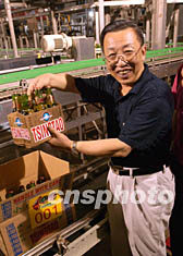 八月十四日子夜,青島啤酒自誕生以來第一個(gè)一百年生產(chǎn)的最后一箱啤酒正式下線。青島啤酒股份有限公司董事長(zhǎng)李桂榮在生產(chǎn)線前見證這一重要時(shí)刻。青島啤酒誕生于1903年8月15日。中新社記者:張煒
