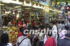 近日來(lái)澳門旅游觀光的客人急增,圖為星期天在澳門(乙加水)仔著名老城區(qū)官也街里,來(lái)自香港和內(nèi)地的游客熙熙攘攘購(gòu)買具有澳門特色的食品。中新社記者:李剛