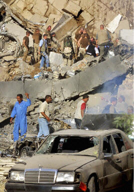 當(dāng)?shù)貢r間8月19日16:40左右(北京時間8月19日20:40左右),設(shè)在伊拉克首都巴格達(dá)運(yùn)河酒店的聯(lián)合國辦事機(jī)構(gòu)總部發(fā)生強(qiáng)烈爆炸,有證據(jù)表明爆炸是汽車炸彈造成的。在爆炸事件中,聯(lián)合國伊拉克問題特別代表德梅洛受重傷。(春風(fēng))