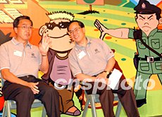 香港政務(wù)司司長曾蔭權(quán)、警務(wù)處長曾蔭培出席香港少年警訊滅罪夏令營活動。中新社記者:錢興強