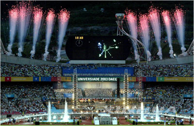 據(jù)新華網(wǎng)消息,繼北京成功舉辦第二十一屆世界大學生運動會,國際大體聯(lián)在新世紀之初第二次選擇了亞洲。經過兩年不懈的努力,只有200多萬人口的大邱將一幅精心繪制的青春畫卷展現(xiàn)在了來賓面前。韓國總統(tǒng)盧武鉉21日晚在這里宣布大運會開幕,標志著亞洲體育走向世界的步伐正在加快,而世界對亞洲的認同也正趨于一致。
