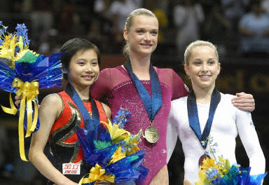 這兩名十七歲的小將不負(fù)重望,特別是中國女隊(duì)領(lǐng)軍選手張楠狀態(tài)明顯回升,第一項(xiàng)平衡木得了今晚全場最高分九點(diǎn)七分,在自由體操比賽中也穩(wěn)定發(fā)揮。不過由于她跳馬相對較弱,高低杠又出現(xiàn)屈腿的小失誤,只得九點(diǎn)二六二分,最后以三十七點(diǎn)六二四分奪得銅牌。這是迄今中國選手在世錦賽女子全能項(xiàng)目上的最佳戰(zhàn)績。