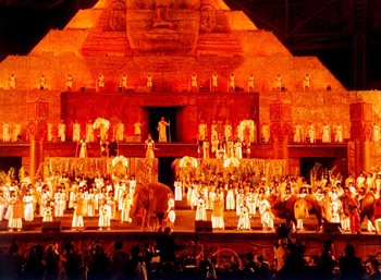 他透露,與傳統(tǒng)的悲傷結(jié)尾不同,此次演出為《阿依達》設(shè)計了一個富有東方情調(diào)的結(jié)尾,越到結(jié)束時氣氛越熱烈,燈光熄滅后金字塔上將點亮幾百個火把,成百上千的氣球和蝴蝶將飛向空中……