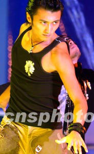 香港歌星謝霆鋒 ,在二十三日晚紅(石+勘)香港體育館舉行的2003年度香港小姐競選決賽上演唱 。 中新社記者:錢興強