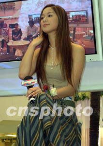 香港演藝明星徐子淇二十四日出席一新聞發(fā)布會(huì)時(shí),身穿低胸緊身衣,性感十足。作者:譚達(dá)明
