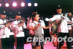 二十三日晚,參加福建·香港周活動(dòng)的香港警察樂隊(duì)在福州演出時(shí),特邀福州小朋友擔(dān)任樂隊(duì)指揮。作者:陳勇