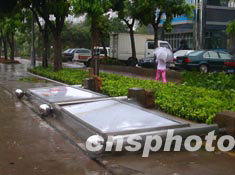 “科羅旺”臺風八月二十五日凌晨橫掃海口市區(qū)后,在濱海路兩側(cè)到處是“傷痕”累累的景象。圖為一座帶有空調(diào)設施的小報亭被臺風吹得東倒西歪。作者:蔣聚榮