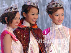 中新網(wǎng)8月26日電 “2003年香港小姐選美”8月23日晚塵埃落定,來(lái)自美國(guó)舊金山、20歲的曹敏莉脫穎而出,奪得桂冠;來(lái)自加拿大溫哥華、22歲的楊洛婷獲亞軍,季軍是香港本地佳麗、21歲的戚黛黛。