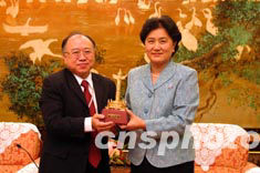 劉延?xùn)|向香港律師屆訪京團(tuán)贈(zèng)送禮品