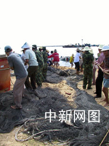中新社?诎嗽露针(記者關(guān)向東王辛莉通訊員余茂生)?谛潞4鍧O民陳家位,一臉疲憊地依在剛打撈出水的自家漁船船頭,船頭左側(cè)一大洞,后艙甲板翻倒在沙灘上,兩年前花七萬元人民幣造的漁船因一場(chǎng)臺(tái)風(fēng)轉(zhuǎn)眼間散架成一堆廢木。