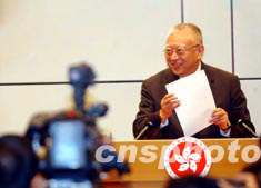 香港特首董建華8月28日在出席深港西部通道的奠基典禮后,在香港政府總部召開記者會,轉(zhuǎn)達(dá)國務(wù)院副總理曾培炎對港粵經(jīng)驗(yàn)合作的重視和對香港經(jīng)濟(jì)的支持。作者:洪少葵