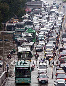 “杜鵑”臺(tái)風(fēng)給廣州帶來(lái)了狂風(fēng)暴雨,不少地方出現(xiàn)水淹現(xiàn)象,造成很多路段嚴(yán)重塞車(chē)。作者:梁永強(qiáng)