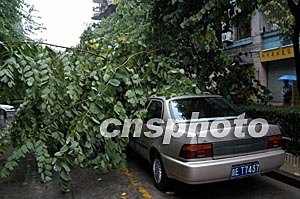 “杜鵑”臺(tái)風(fēng)給廣州帶來(lái)了狂風(fēng)暴雨,不少樹(shù)木被連根拔起,旁邊停放的小車(chē)亦深受其害。作者:梁永強(qiáng)