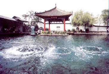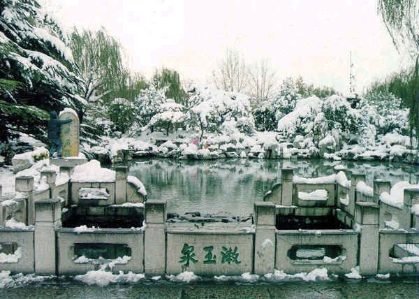 趵突泉又名檻泉,為濼水之源,至今已有二千七百年的歷史。趵突泉,三窟并發(fā),聲如隱雷,“泉源上奮,水涌若輪”。泉水一年四季恒定在攝氏18度左右,嚴冬,水面上水氣裊裊,像一層薄薄的煙霧,一邊是泉池幽深波光粼粼,一邊是樓閣彩繪,雕梁畫棟,構成了一幅奇妙的人間仙境。歷代著名文學家、哲學家、詩人諸如曾鞏、蘇軾、張養(yǎng)浩、王守仁、蒲松齡等都有吟泉佳作和美文。