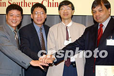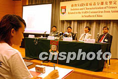 香港大學(xué)醫(yī)學(xué)院,九月五日在香港舉行“ 動物SARS病樣毒分離及鑒定”研究報告會,報告指出“活畜零售可能是傳播SARS病毒的主要途徑”。圖為香港大學(xué)醫(yī)學(xué)院微生物學(xué)系四位知名教授在會上。中新社記者:錢興強(qiáng)