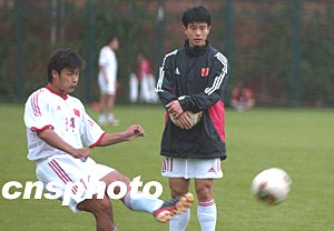 九月八日傍晚,中國(guó)U23足球隊(duì)(國(guó)奧隊(duì))球員在昆明紅塔足球基地加緊訓(xùn)練定位球。十日晚,雅典奧運(yùn)會(huì)足球預(yù)選賽中國(guó)U23足球隊(duì)與敘利亞U23隊(duì)的比賽將在昆明拓東體育場(chǎng)進(jìn)行。中新社記者:張煒