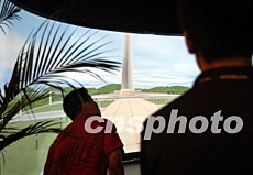 科博會之?dāng)?shù)字奧運(yùn)技術(shù)裝備展首次向大眾展出,圖為觀眾在觀看奧運(yùn)場館建設(shè)三維仿真系統(tǒng)。中新社記者:張宇