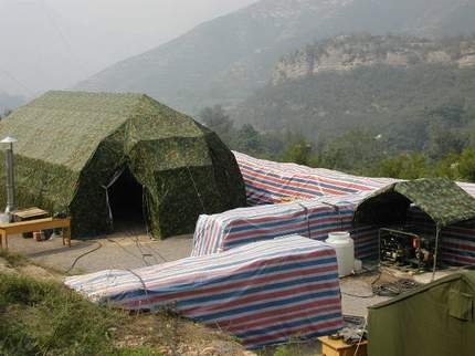 中新網(wǎng)9月13日電 昨天,天高氣清,從蓮花山往遠處看,抱犢寨旅游風景區(qū)的纜車在空中緩緩滑過。放眼身邊,是一排排規(guī)劃整齊的帳篷。其中一個最大的帳篷就是藁城毒氣彈運到鹿泉市后的埋藏點,也就是現(xiàn)在所說的“挖掘處理所”。這個帳篷的特殊之處在于,它是一個負壓通風帳篷,里邊換氣需要通過特殊裝置,為的是一旦毒氣彈泄露,能夠控制在一定范圍,不至于泄到外邊。