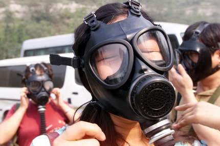 在“中方協(xié)助團”防化專家的帶領下,記者穿戴好一整套厚重嚴密的防化服,戴好防毒面具,經(jīng)過作業(yè)保障區(qū),接受過防毒面具氣密性檢測后,進入被稱為“高毒、高爆、高危險”的作業(yè)污染區(qū)。