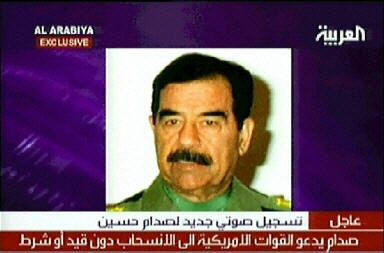 中新網(wǎng)9月17日電 據(jù)路透社報(bào)道,設(shè)在阿聯(lián)酋首都迪拜的阿拉伯電視臺(tái)17日播放了一盤據(jù)稱是薩達(dá)姆錄制的最新錄音磁帶。薩達(dá)姆在錄音磁帶中要求說,美國(guó)必須無(wú)條件地將其駐伊美軍全部撤出伊拉克。