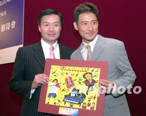 保良局主席王賜豪向張學友頒贈由局童所繪畫的圖畫留念。作者:鄧慶樂