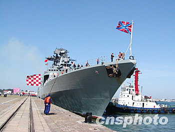 9月20日,俄羅斯海軍“潘捷列耶夫海軍上將”號大型反潛艦在太平洋艦隊(duì)副司令科涅夫·亞歷山大·瓦西里耶維奇中將率領(lǐng)下抵達(dá)青島港。鄒山 攝