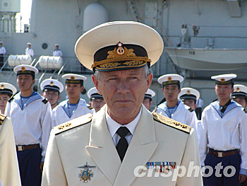 9月20日,俄羅斯海軍“潘捷列耶夫海軍上將”號大型反潛艦,在太平洋艦隊(duì)副司令科涅夫·亞歷山大·瓦西里耶維奇中將率領(lǐng)下,抵達(dá)青島港,開始對青島進(jìn)行友好訪問。圖為俄海軍太平洋艦隊(duì)副司令瓦西里耶維奇中將在歡迎儀式上。鄒山 攝
