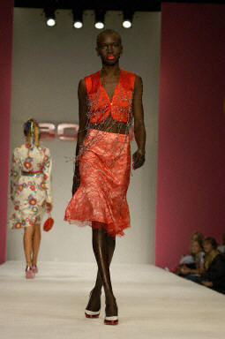 9月22日在倫敦時裝周上,模特現(xiàn)場展示了2004春夏最新流行服飾。