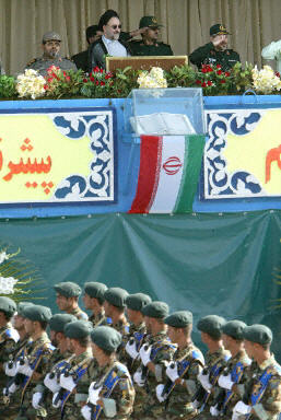 9月22日,在伊朗首都德黑蘭舉行的閱兵式上,一輛卡車運載著該國最新研制的“流星-3型”中程彈道導(dǎo)彈。當(dāng)天,伊朗舉行活動紀(jì)念兩伊戰(zhàn)爭爆發(fā)23周年,紀(jì)念活動中展示了最新研制的“流星-3型”中程彈道導(dǎo)彈。該型導(dǎo)彈已經(jīng)于2003年7月裝備伊朗伊斯蘭革命衛(wèi)隊。伊朗一名高級官員當(dāng)天也表示,將減少與國際原子能機(jī)構(gòu)的合作。