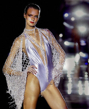 9月24日,在倫敦的2004春夏時裝周上,名?藏悹栒故綣ulien Macdonald設(shè)計的新款時尚時裝,展露自己的性感身材。