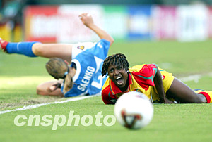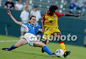 美國當?shù)貢r間9月25日16點15分,2003年第四屆女足世界杯D組加納隊對俄羅斯隊的比賽在美國洛杉磯南部卡森的The Home Depot Center體育場舉行。上半場俄羅斯隊1比0領(lǐng)先下半場俄羅斯隊擴大戰(zhàn)果,最終以3比0獲勝。作者:劉占坤