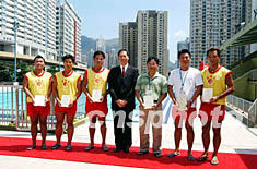 六名服務于香港摩士公園游泳池的救生員,曾在九月二十一日協(xié)助拯救在車禍中受傷的市民?滴氖鹗鹄碇硎痖L(康樂事務)張國基(中)二十六日頒發(fā)嘉許狀表揚參與救人的救生員。中新社圖