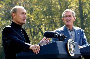 布什和普京還就雙邊關(guān)系、車臣局勢、中東沖突以及反恐等問題發(fā)表了看法并回答了提問。