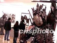 北京金秋時節(jié)舉辦的首屆國際美術(shù)雙年展上,中國年青美術(shù)家運(yùn)用多種鋼鐵材料焊接創(chuàng)作的古代將軍塑像,別具匠心。中新社記者:賈國榮