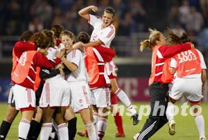 美國當?shù)貢r間10月2日晚,在2003女足世界杯中國隊與加拿大隊爭奪四強席位的比賽中,開場不久,由于中國隊后衛(wèi)的失誤,被加拿大隊攻入一球,在隨后的比賽中雖中國隊破門無術(shù),只能告別世界杯。作者:劉占坤