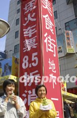 北京十一黃金周期間外地游客大幅上升,北京王府井一家美食廣場(chǎng)為招攬客源推出“憑火車票八五折消費(fèi)”的優(yōu)惠措施,吸引了大批旅游者。中新社記者:廖文靜