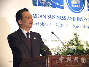 首屆東盟商業(yè)與投資峰會今天在巴厘島舉行,溫家寶出席會議并發(fā)表了題為《中國的發(fā)展和亞洲的振興》的演講。他表示,今年以來,中國克服非典疫情的嚴重沖擊,國民經濟保持了快速健康發(fā)展的良好局面。上半年國內生產總值增長百分之八點二。