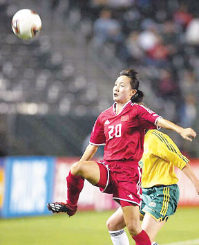 在上屆世界杯中,中國隊(duì)發(fā)揮出色,打進(jìn)決賽(半決賽5-0淘汰挪威);在決賽的點(diǎn)球大戰(zhàn)中,以4-5惜敗給美國隊(duì)痛失冠軍。由于中國隊(duì)的出色表現(xiàn),當(dāng)時(shí)總共有7名中國球員入選明星隊(duì),她們是:前鋒孫雯,守門員高紅,后衛(wèi)王麗平,溫麗容,中場劉愛玲和趙麗紅,及前衛(wèi)金嫣。