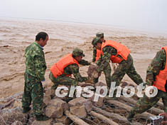 面對嚴(yán)峻形勢,黃河防總科學(xué)調(diào)度小浪底、三門峽、故縣、陸渾水庫,通過四庫聯(lián)調(diào),有效地削減了渭河5次洪水過程。但是由于黃河下游河道長時(shí)間過水,局部河段河勢發(fā)生變化,導(dǎo)致下游控導(dǎo)工程出現(xiàn)大量險(xiǎn)情,特別是近年來在旱地上的新修工程。目前,蘭考至東明黃河大堤嚴(yán)重偎水,偎水長度近50公里。尤其是山東東明河段大堤1/2至2/3被洪水淹沒,洪水最深達(dá)6米,偎水深度創(chuàng)歷史最高,情況十分危急。