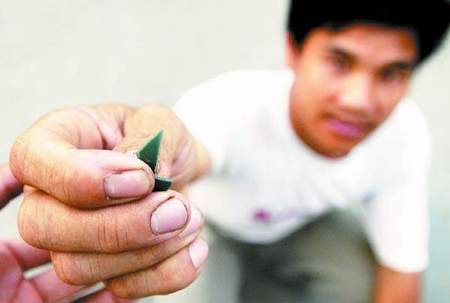 曾先生說,他在驚嚇過后才覺得全身麻痛,仔細(xì)檢查才發(fā)現(xiàn)自己多處掛彩。一些小碎片嵌進(jìn)肌肉里,身上綻開多道血痕。他從右腿傷口拔出一塊指甲蓋大小的硬質(zhì)墨綠色碎片,告訴記者這就是爆炸的不明物體。