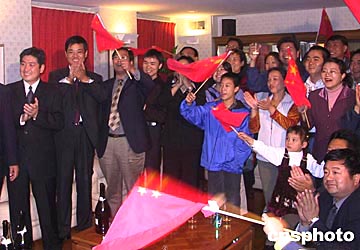 圖:中國留美學生慶賀中國載人航天飛行成功