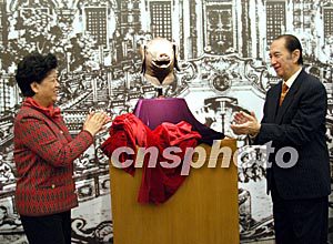 這,就是何鴻燊博士捐款六百多萬(wàn)元人民幣,自海外搶救的圓明園豬首銅像。國(guó)務(wù)委員陳至立與何鴻燊共同為這件回歸的國(guó)寶揭幕。