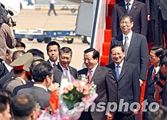 十月十七日國(guó)家副主席曾慶紅蒞臨澳門(mén)訪問(wèn),國(guó)務(wù)委員唐家璇,全國(guó)政協(xié)副主席、國(guó)務(wù)院港澳辦主任廖暉隨同抵達(dá)。中新社記者:潘索菲