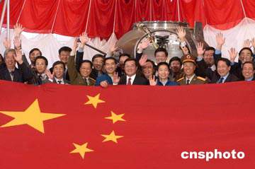 圖:神舟五號載人飛船"乘客"五星紅旗亮相