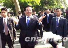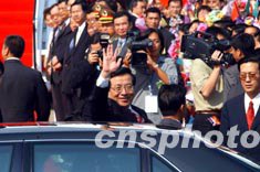 曾慶紅在大三巴停留片刻,隨即步行前往附近炮臺(tái)山上的澳門博物館。他對(duì)館內(nèi)的展品甚感興趣,不時(shí)停下腳步仔細(xì)觀看。隨后他來到館前的大炮臺(tái)上遙望澳門景色,受到在場(chǎng)逾百市民和游客的鼓掌歡迎,曾慶紅主動(dòng)與眾人握手,親切地抱起了一名小孩。在回答記者提問時(shí),曾慶紅表示對(duì)澳門印象很好。