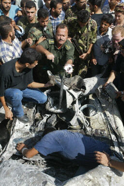 目擊者說(shuō),被擊中的小貨車(chē)當(dāng)時(shí)在鬧市的一個(gè)汽油旁停下,而附近的小學(xué)和幼兒園正在放學(xué),導(dǎo)彈擊中了車(chē)頭。至少一名小童滿身鮮血坐在路邊,而貨車(chē)內(nèi)有一具燒焦的尸體。