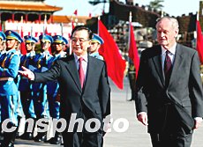 中新社北京十月二十二日電(記者齊彬)中國總理溫家寶今天在此間與來訪的加拿大總理克雷蒂安舉行會談,并就中加關(guān)系的持續(xù)發(fā)展提出了三點建議。
