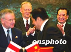 克雷蒂安贊同溫家寶對兩國關(guān)系的評價和提出的建議,他說,加中在各領(lǐng)域合作關(guān)系發(fā)展順利,兩國人民間的友誼不斷加深,加方對此感到滿意。加方希望雙邊貿(mào)易在今后七年內(nèi)再翻一番,期待與中方加強在能源、保險、環(huán)保、農(nóng)業(yè)等領(lǐng)域的合作,也歡迎更多中國人到加拿大旅游、留學(xué)。