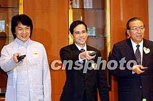 香港長(zhǎng)江集團(tuán)在香港公益金成立35周年之際,舉辦“長(zhǎng)和愛(ài)心為公益”籌款活動(dòng),圖為10月30日,長(zhǎng)江實(shí)業(yè)董事總經(jīng)理兼副主席李澤巨、公益金籌募委員會(huì)聯(lián)席主席李業(yè)廣和影星成龍出席記者會(huì)。作者:洪少葵