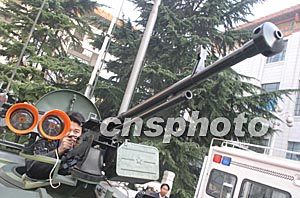 十月底,一位觀眾仔細觀看裝備公安、武警部隊的國產(chǎn)新星牌2002型裝甲防暴車上的重機槍。中新社記者:史利